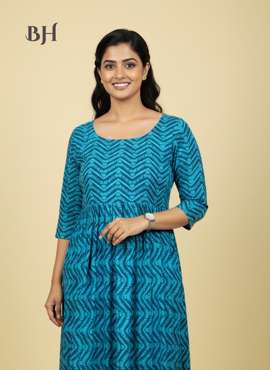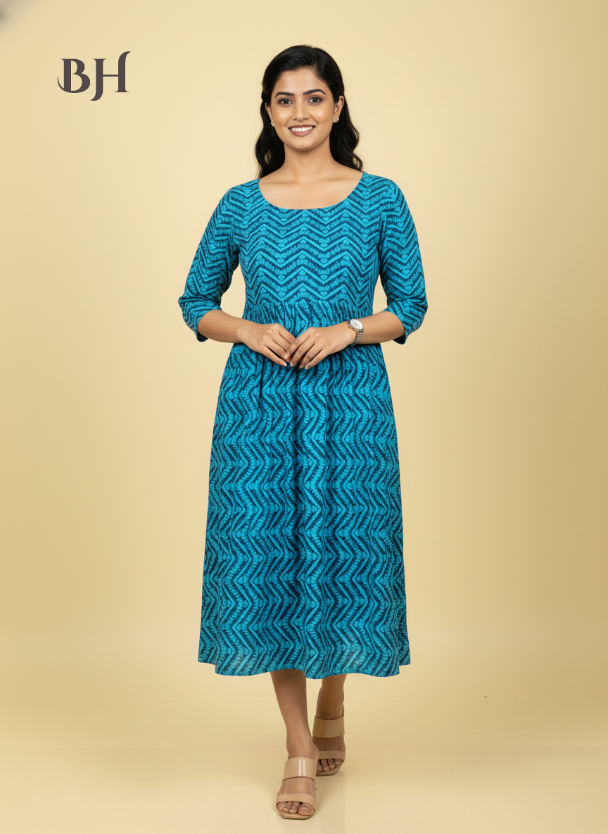 Blue Cotton Frock for Women | Comfortable Daily Wear Dress
