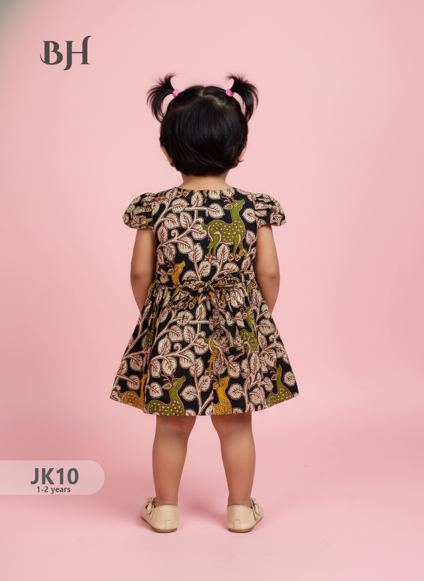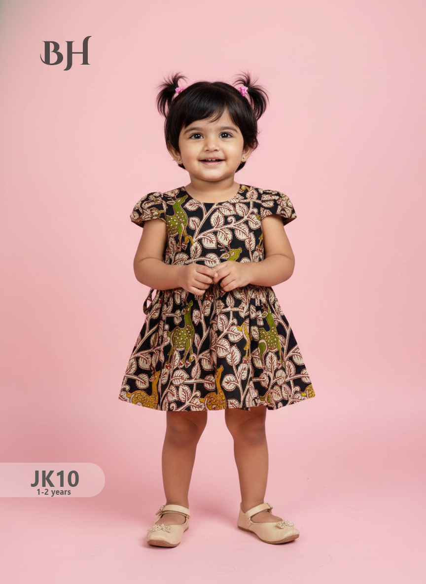 Black Cotton Printed Baby Frocks – Latest Kids Wear Collection | Bhavana Handlooms