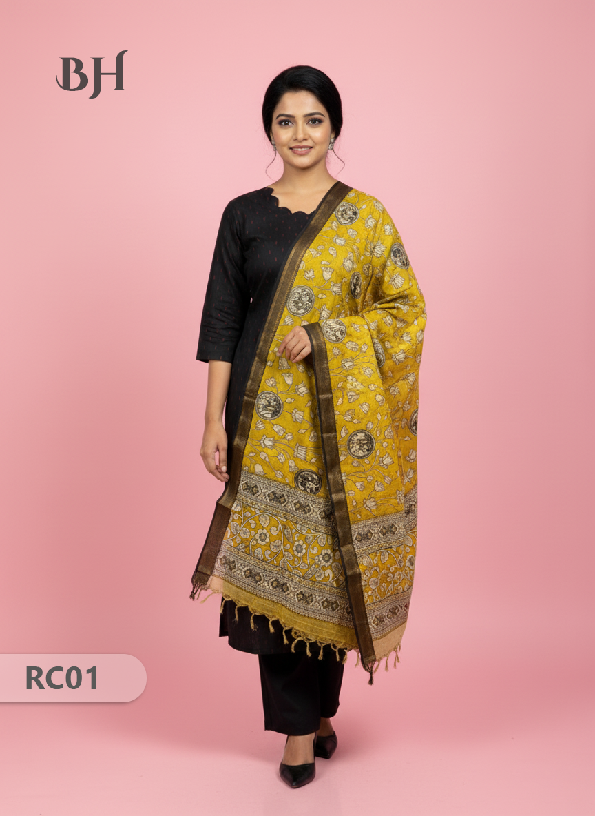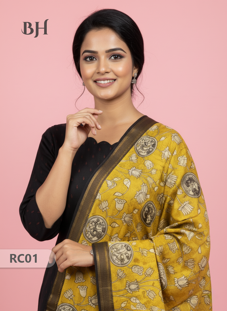 Chennuri Silk Dupatta with Raw Silk Black Top | Elegant Traditional Women’s Wear