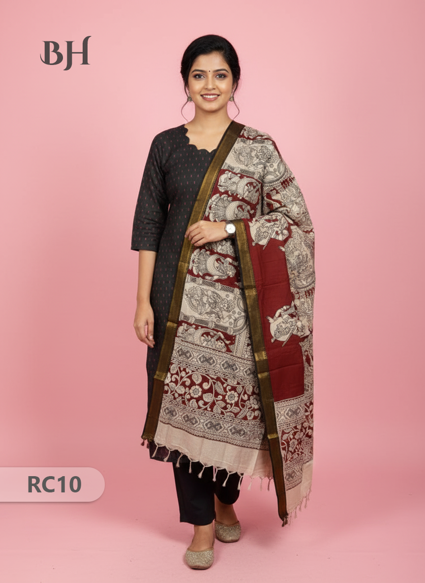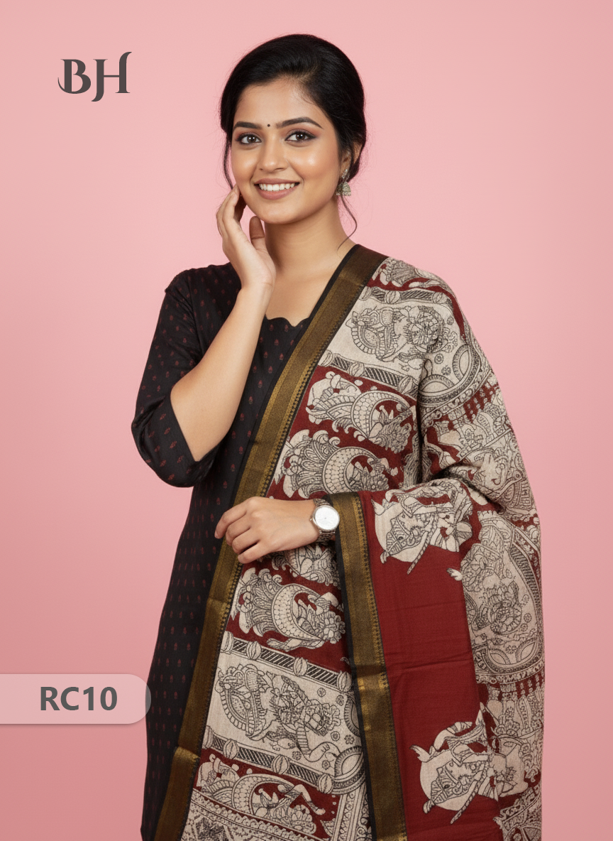 Chennuri Silk Dupatta with Raw Silk Black Top | Elegant Traditional Women’s Wear