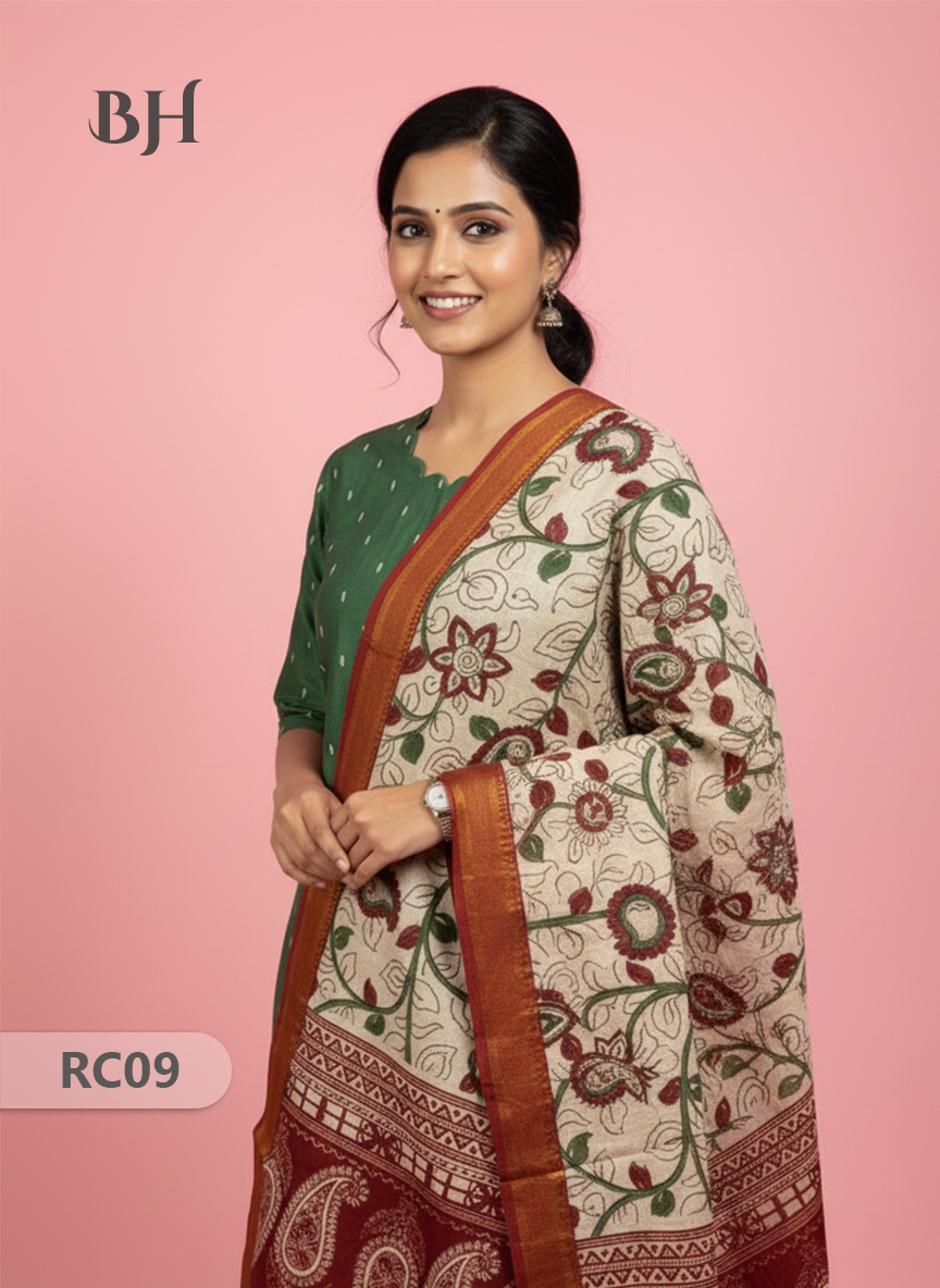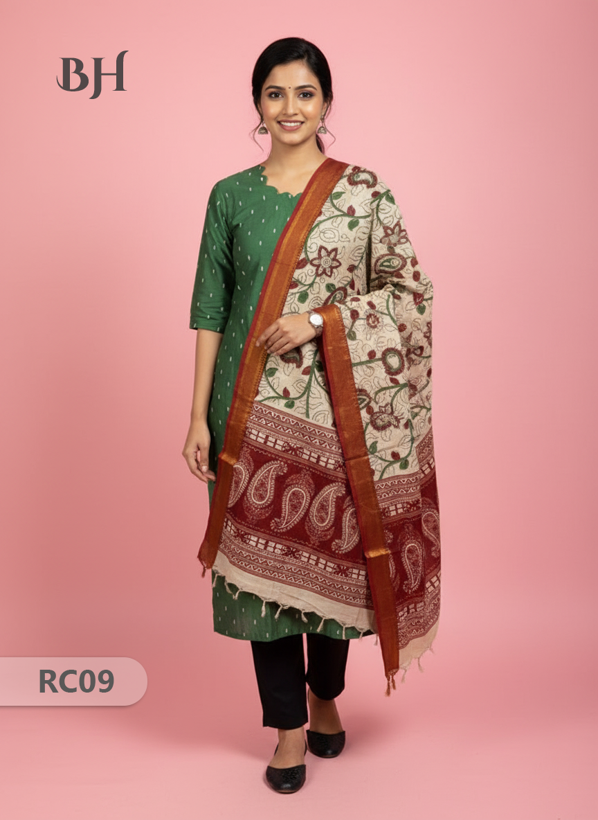 Chennuri Silk Dupatta with Raw Silk Green Top | Elegant Traditional Women’s Wear