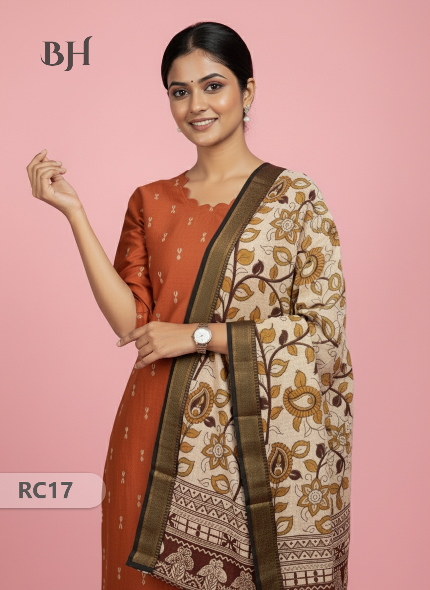 Chennuri Silk Dupatta with Raw Silk Orange Top | Elegant Traditional Women’s Wear