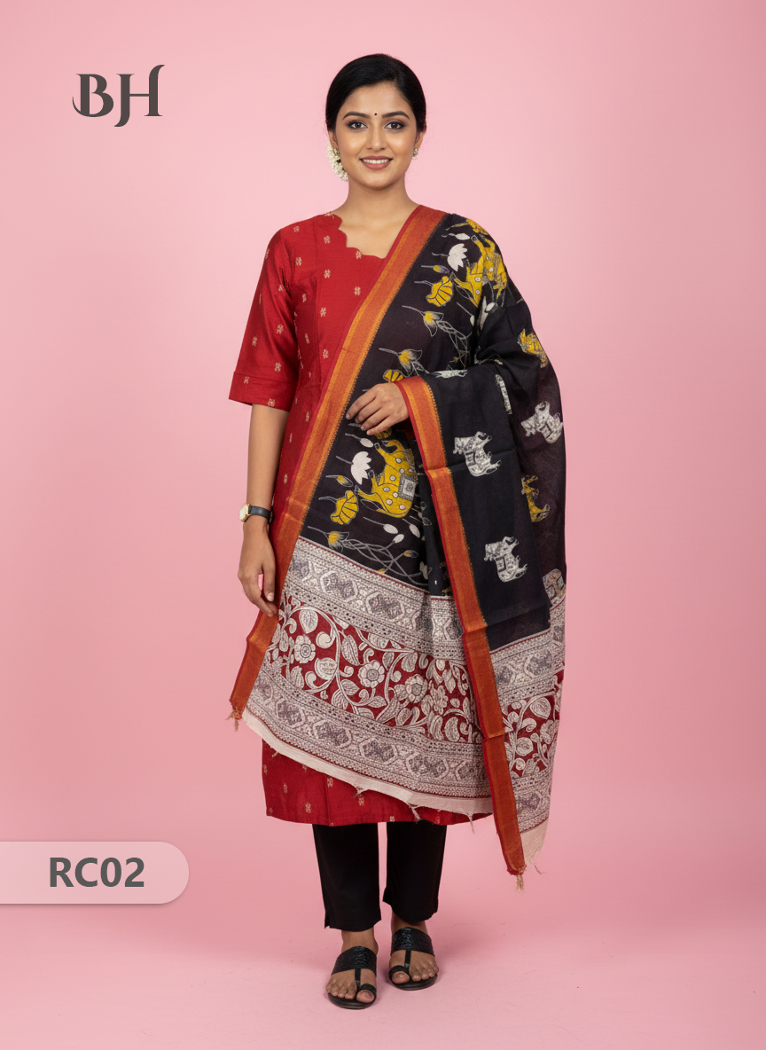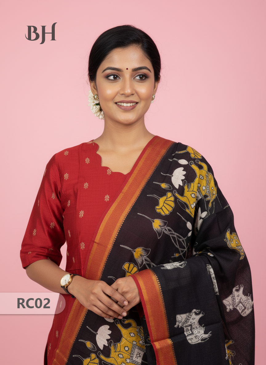 Chennuri Silk Dupatta with Raw Silk Red Top | Elegant Traditional Women’s Wear