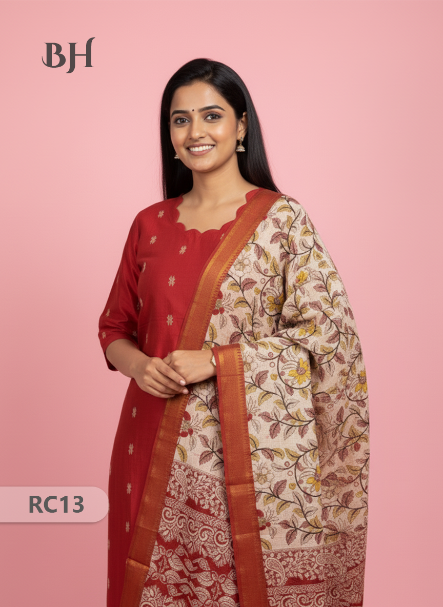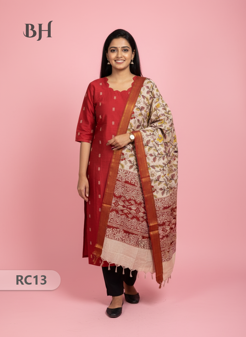 Chennuri Silk Dupatta with Raw Silk Red Top | Elegant Traditional Women’s Wear