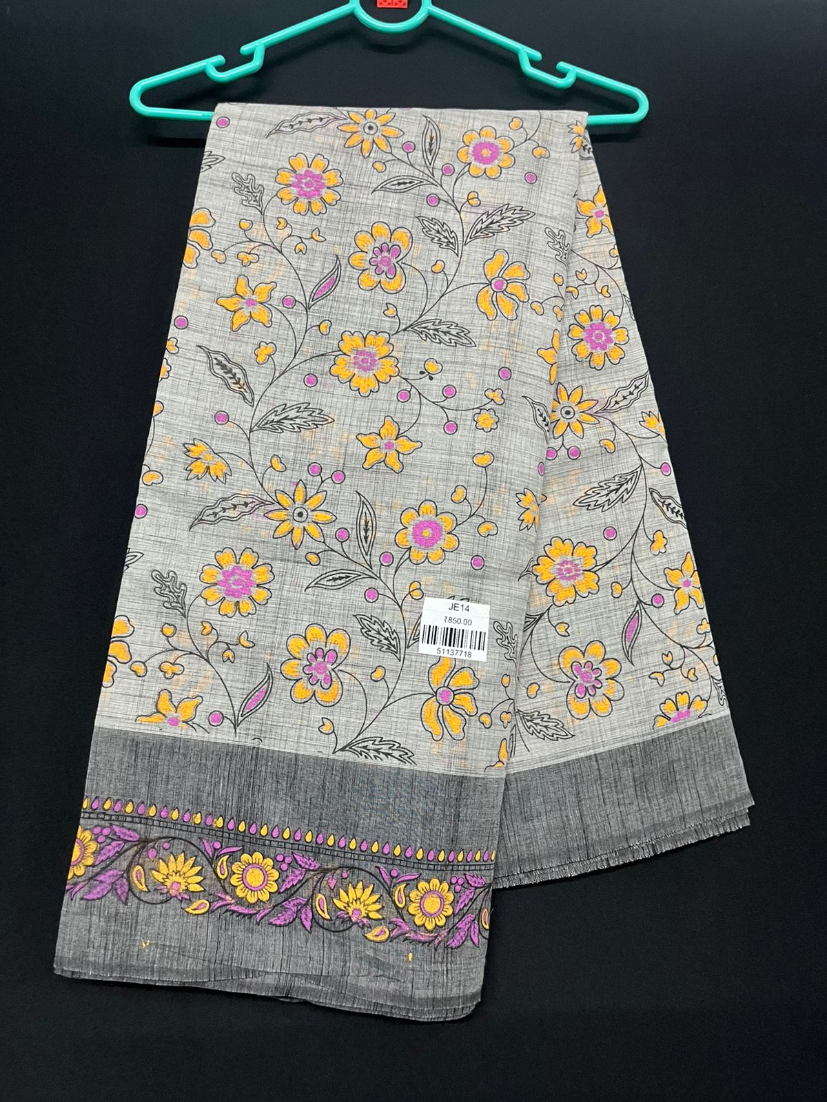 Bhavana Handlooms • Pure Cotton • Half White Shade with Matching Printed Blouse