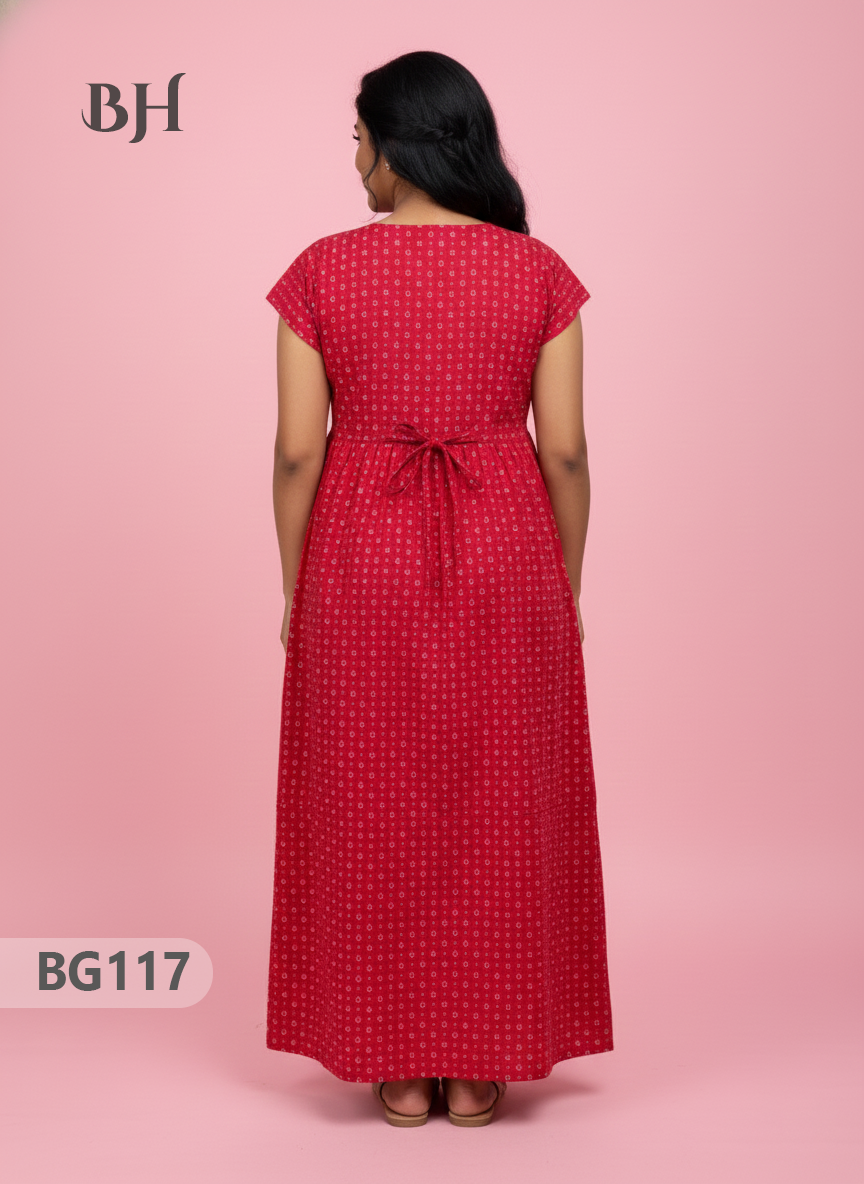 Cotton Frock Nighty with Knot & Pocket | Comfortable Free Size Nightwear