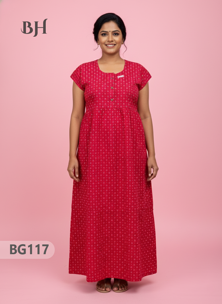 100% Cotton (Soft) Free Size → up to Bust 44" (2XL) Height (Dress Length): 53" Easy Care • Machine Washable
