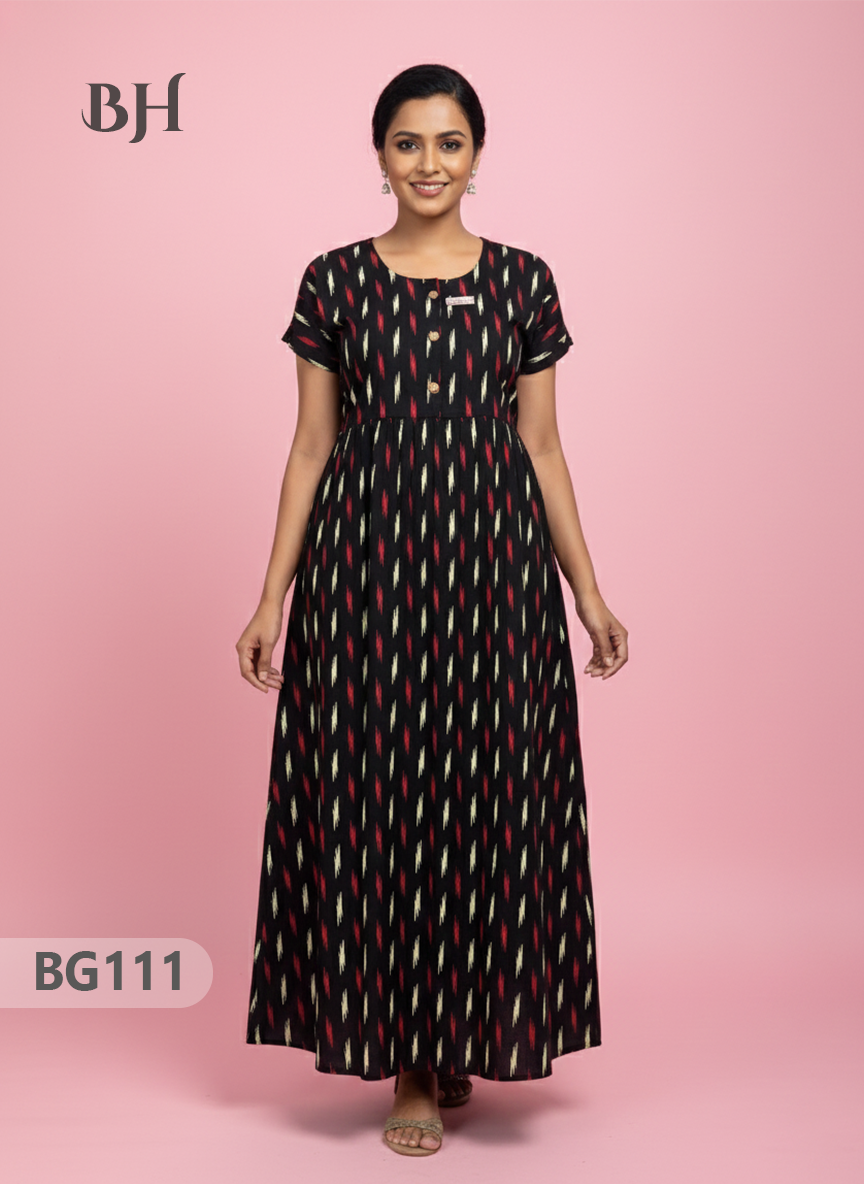 100% Cotton (Soft) Free Size → up to Bust 44" (2XL) Height (Dress Length): 53" Easy Care • Machine Washable