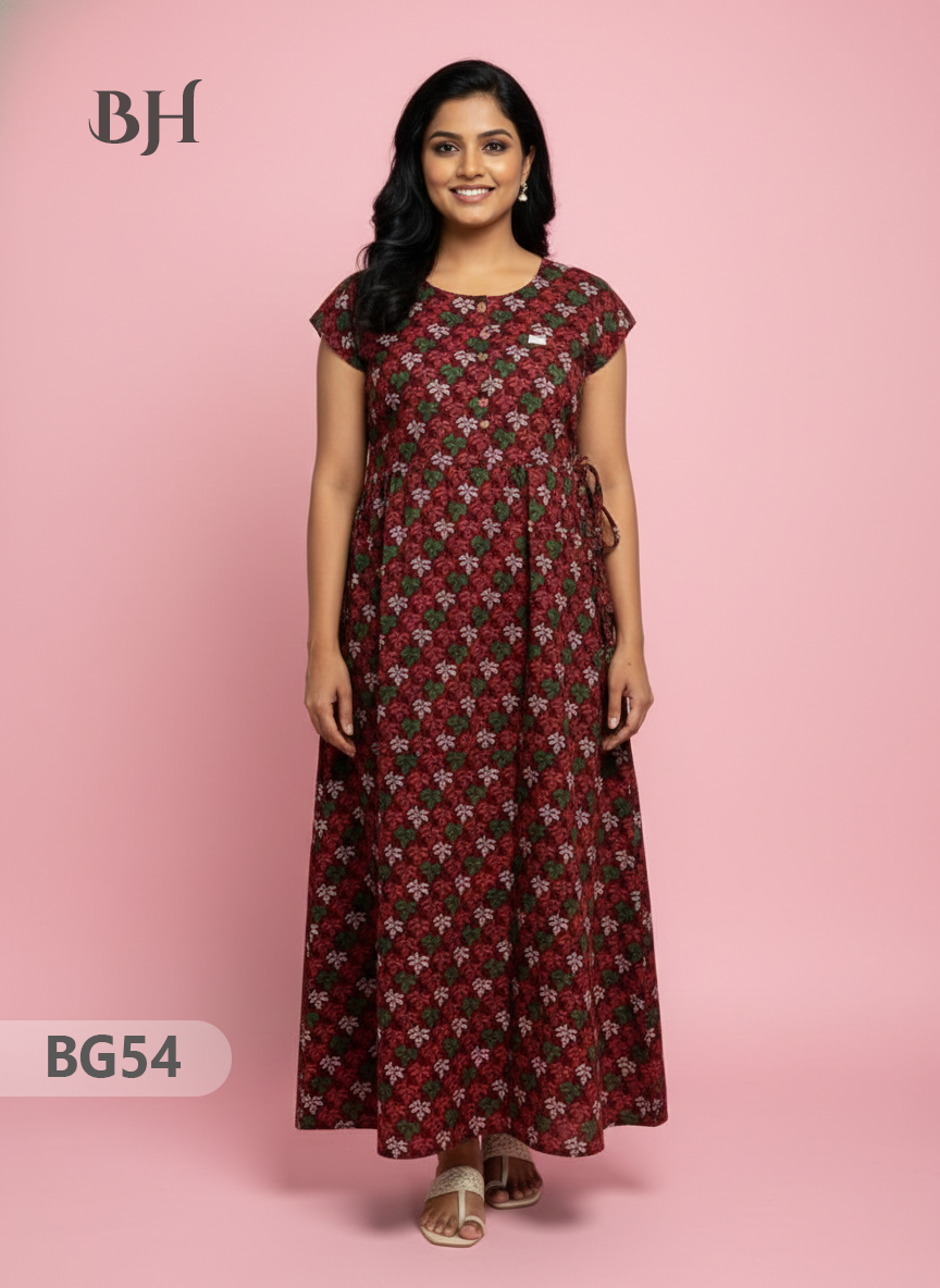 100% Cotton (Soft) Free Size → up to Bust 44" (2XL) Height (Dress Length): 53" Easy Care • Machine Washable