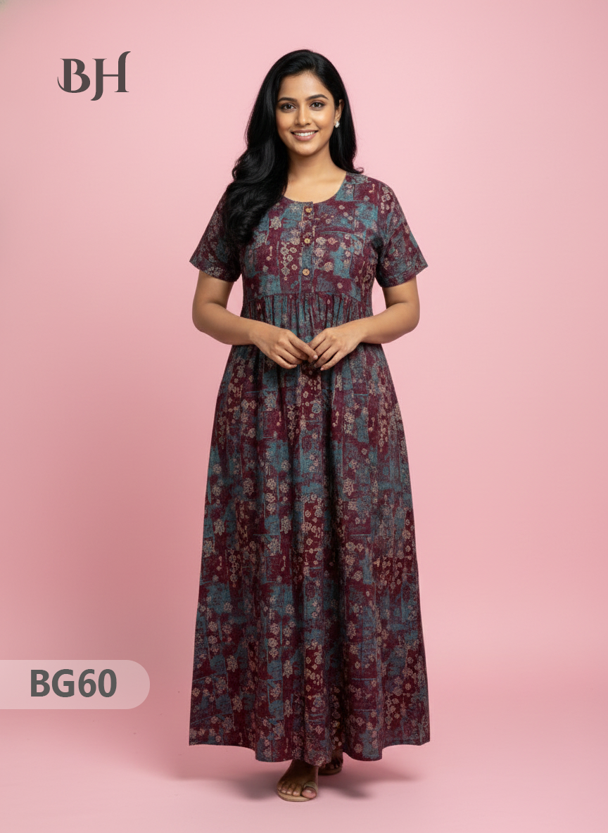 100% Cotton (Soft) Free Size → up to Bust 44" (2XL) Height (Dress Length): 53" Easy Care • Machine Washable