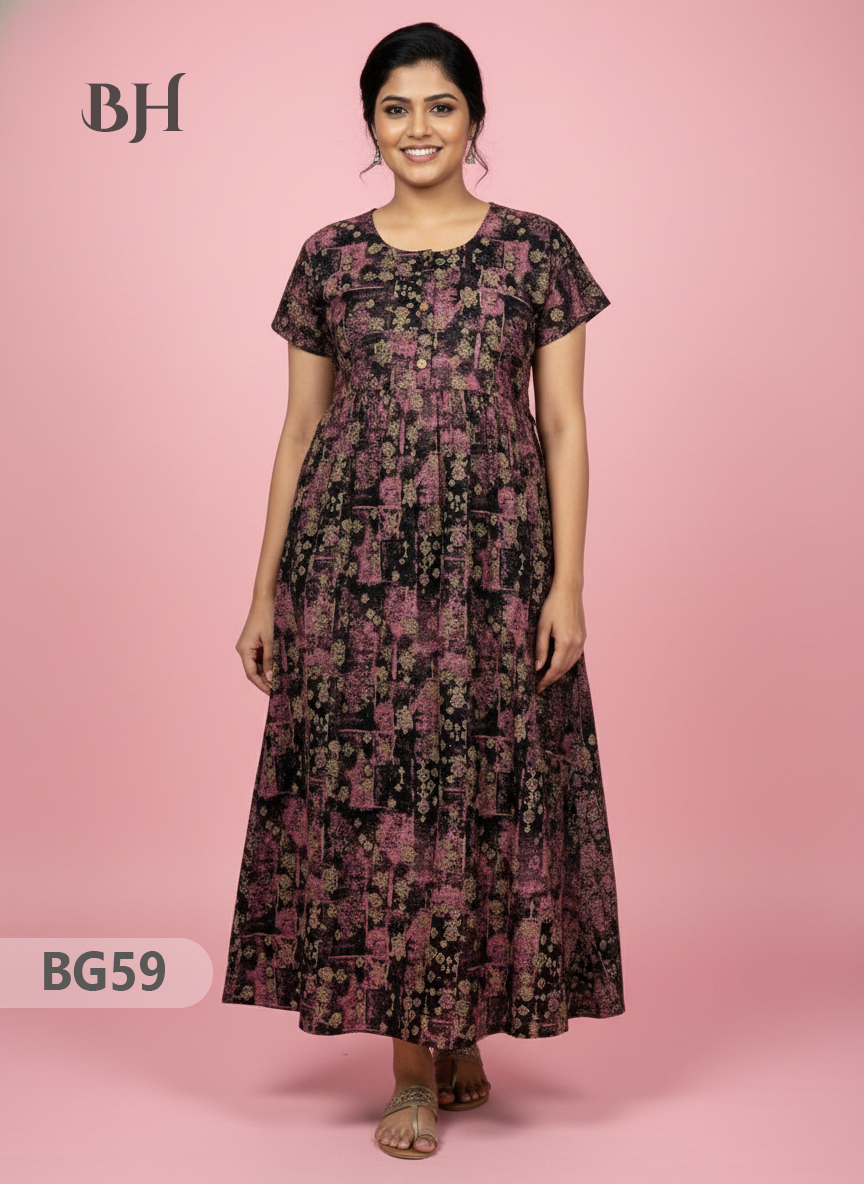 100% Cotton (Soft) Free Size → up to Bust 44" (2XL) Height (Dress Length): 53" Easy Care • Machine Washable