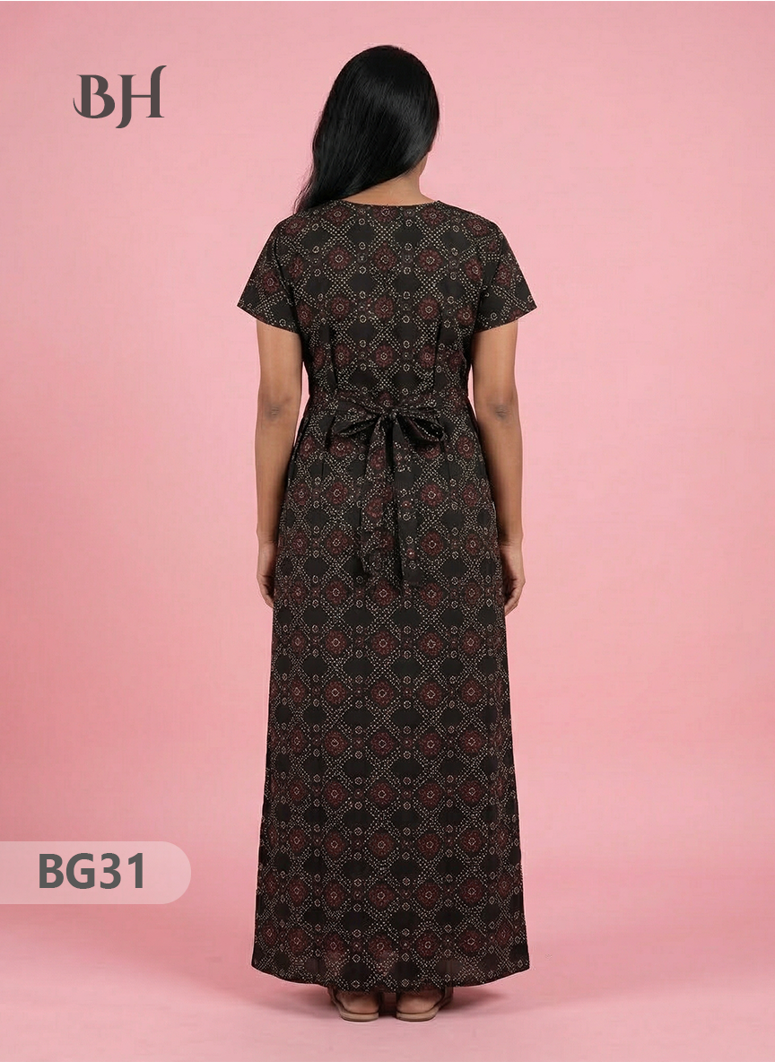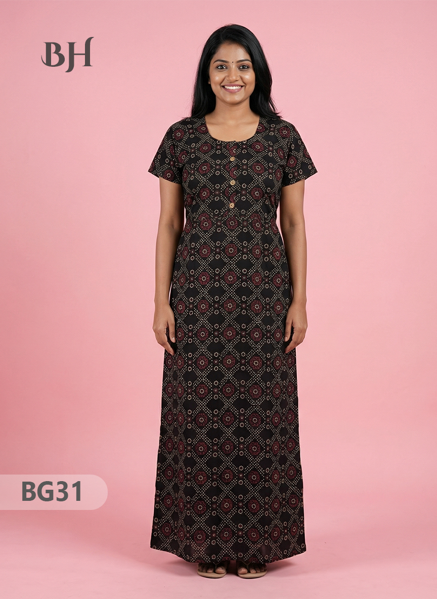 Wear as comfy nightwear or a relaxed at-home frock. Pair with lightweight slippers for cosy evenings or layer with a shrug for early-morning chores. The side pocket adds convenience for small essentials.