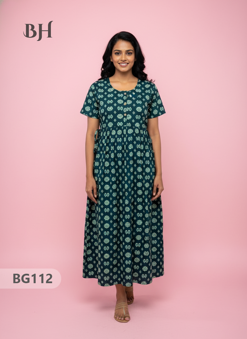 100% Cotton (Soft) Free Size → up to Bust 44" (2XL) Height (Dress Length): 53" Easy Care • Machine Washable
