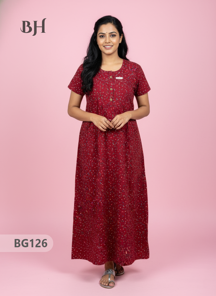 Wear as comfy nightwear or a relaxed at-home frock. Pair with lightweight slippers for cosy evenings or layer with a shrug for early-morning chores. The side pocket adds convenience for small essentials.