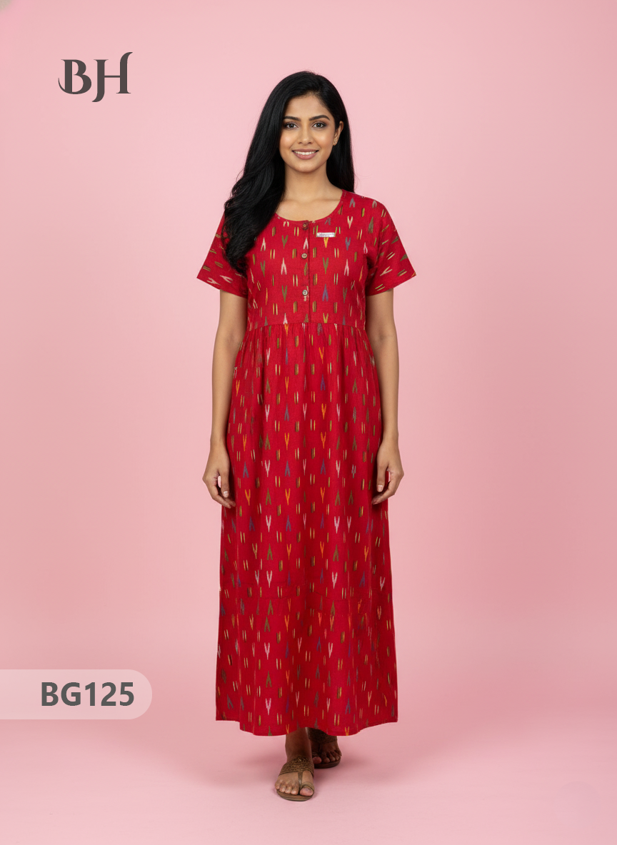 Wear as comfy nightwear or a relaxed at-home frock. Pair with lightweight slippers for cosy evenings or layer with a shrug for early-morning chores. The side pocket adds convenience for small essentials.