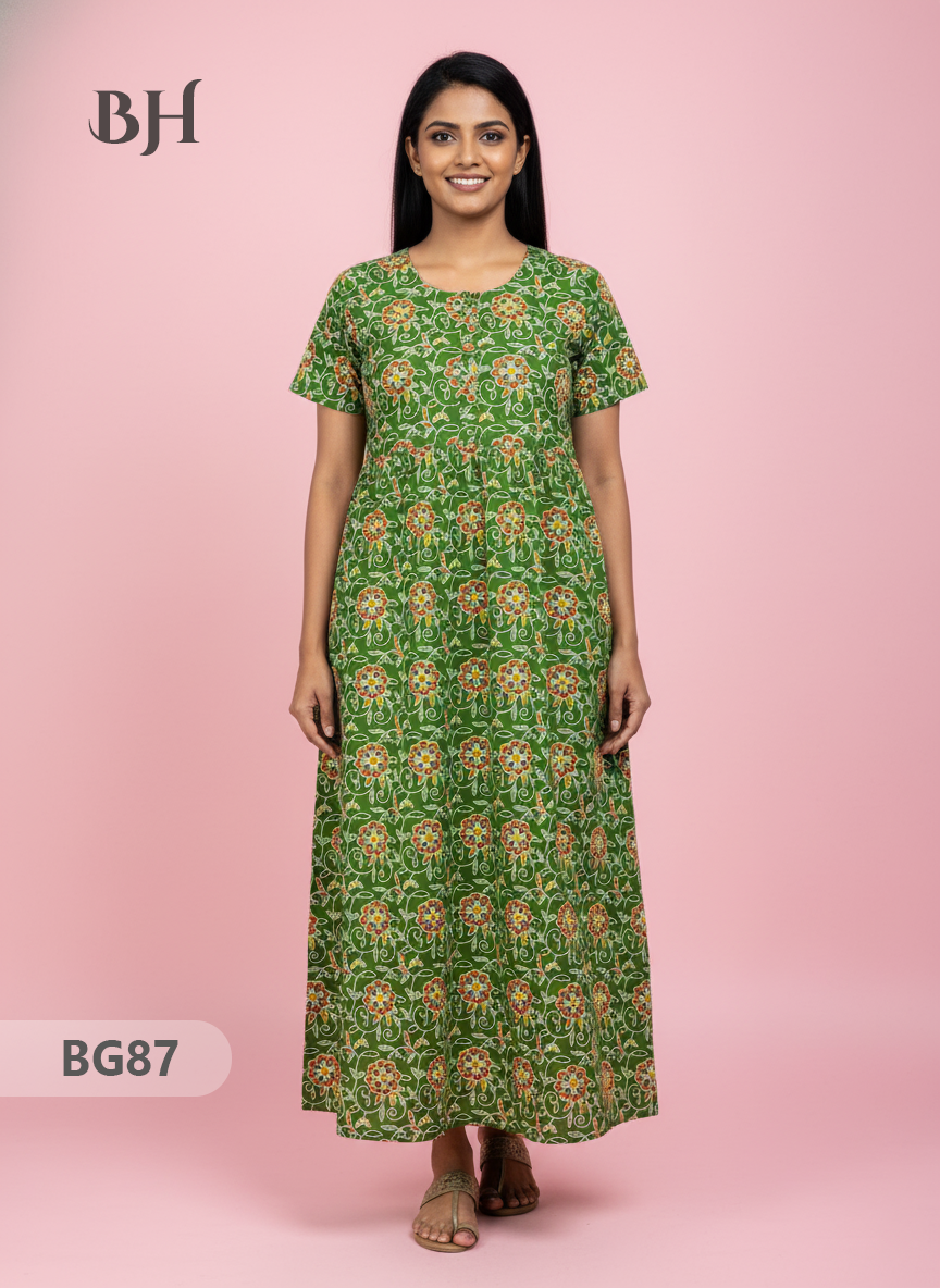 100% Cotton (Soft) Free Size → up to Bust 44" (2XL) Height (Dress Length): 53" Easy Care • Machine Washable