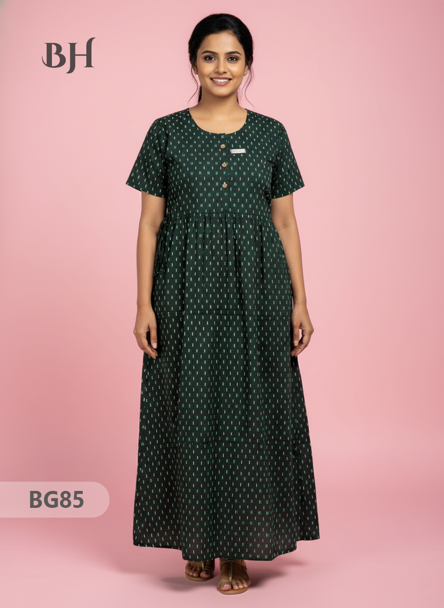 100% Cotton (Soft) Free Size → up to Bust 44" (2XL) Height (Dress Length): 53" Easy Care • Machine Washable