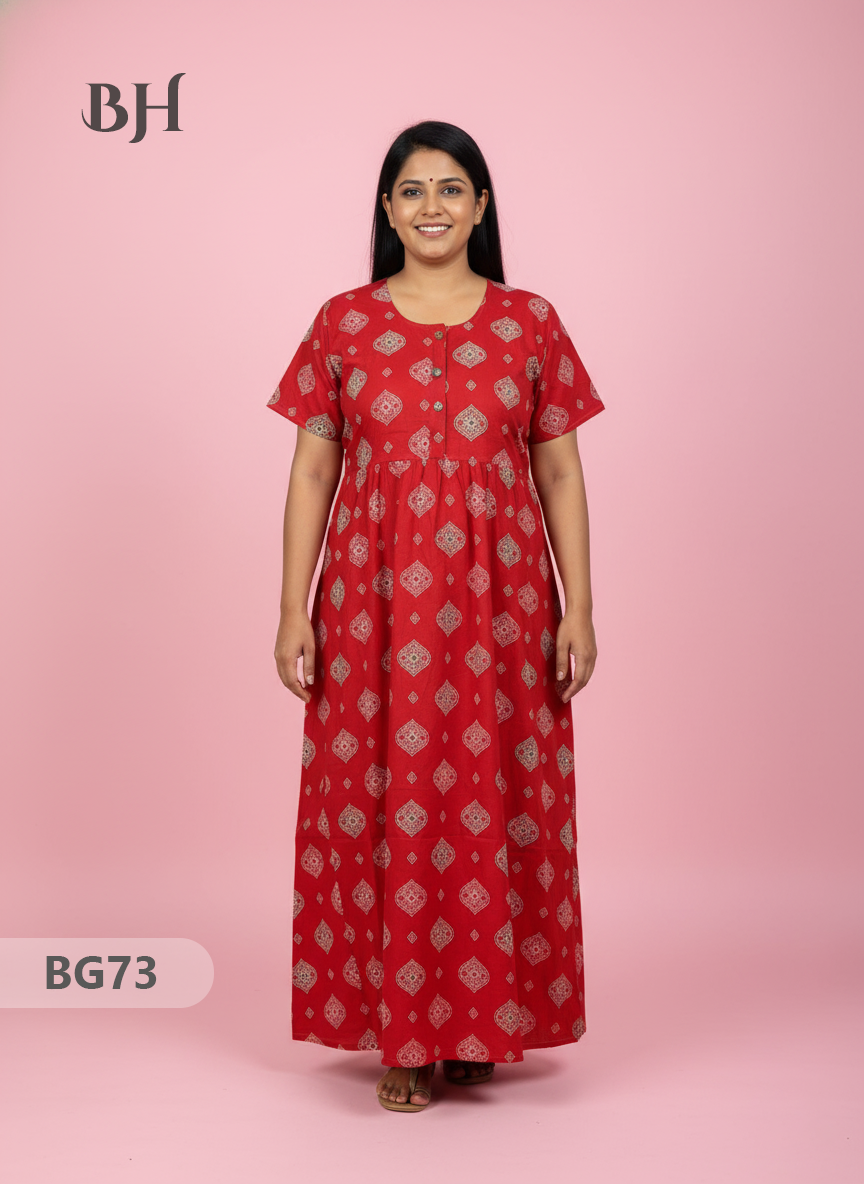 100% Cotton (Soft) Free Size → up to Bust 44" (2XL) Height (Dress Length): 53" Easy Care • Machine Washable