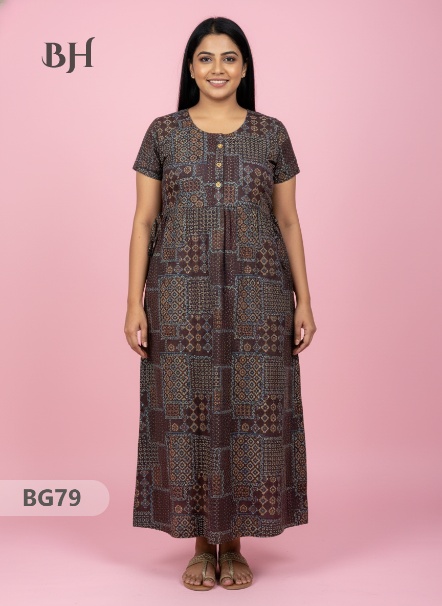100% Cotton (Soft) Free Size → up to Bust 44" (2XL) Height (Dress Length): 53" Easy Care • Machine Washable