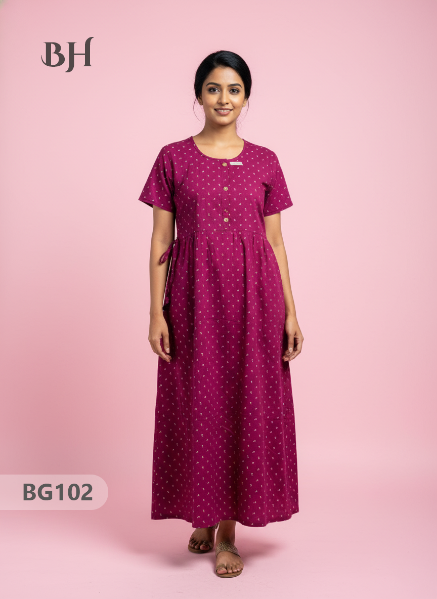 Wear as comfy nightwear or a relaxed at-home frock. Pair with lightweight slippers for cosy evenings or layer with a shrug for early-morning chores. The side pocket adds convenience for small essentials.