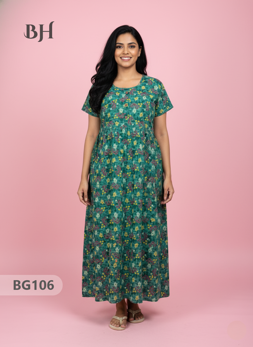 100% Cotton (Soft) Free Size → up to Bust 44" (2XL) Height (Dress Length): 53" Easy Care • Machine Washable