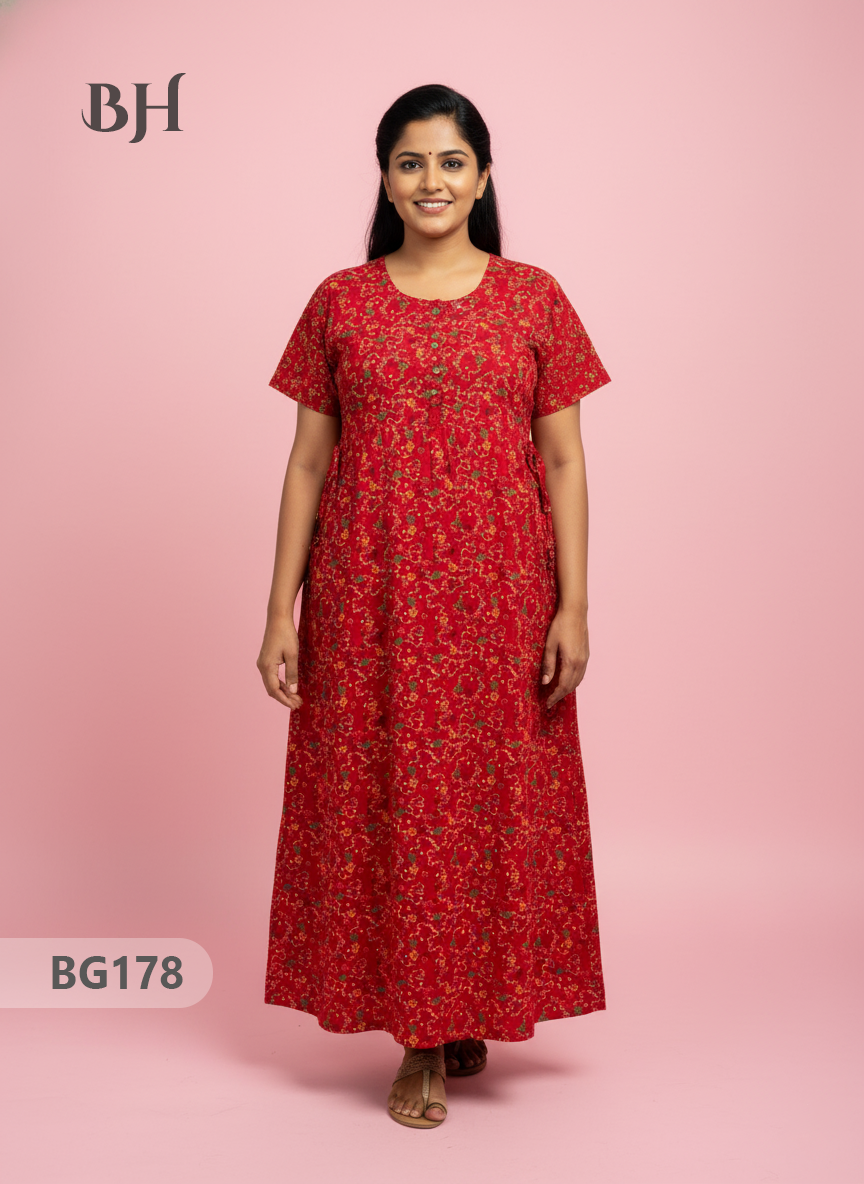 100% Cotton (Soft) Free Size → up to Bust 44" (2XL) Height (Dress Length): 53" Easy Care • Machine Washable