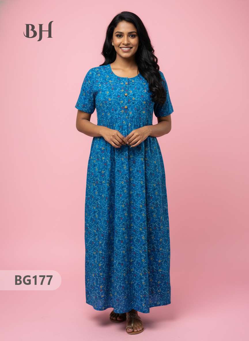 100% Cotton (Soft) Free Size → up to Bust 44" (2XL) Height (Dress Length): 53" Easy Care • Machine Washable