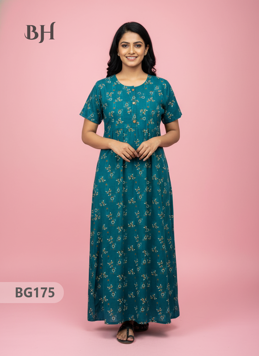 100% Cotton (Soft) Free Size → up to Bust 44" (2XL) Height (Dress Length): 53" Easy Care • Machine Washable
