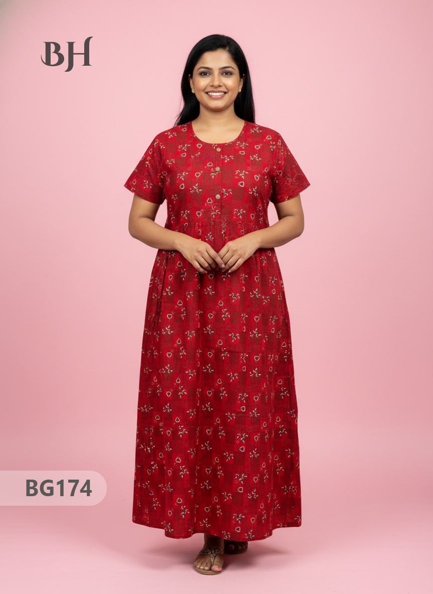 Wear as comfy nightwear or a relaxed at-home frock. Pair with lightweight slippers for cosy evenings or layer with a shrug for early-morning chores. The side pocket adds convenience for small essentials.