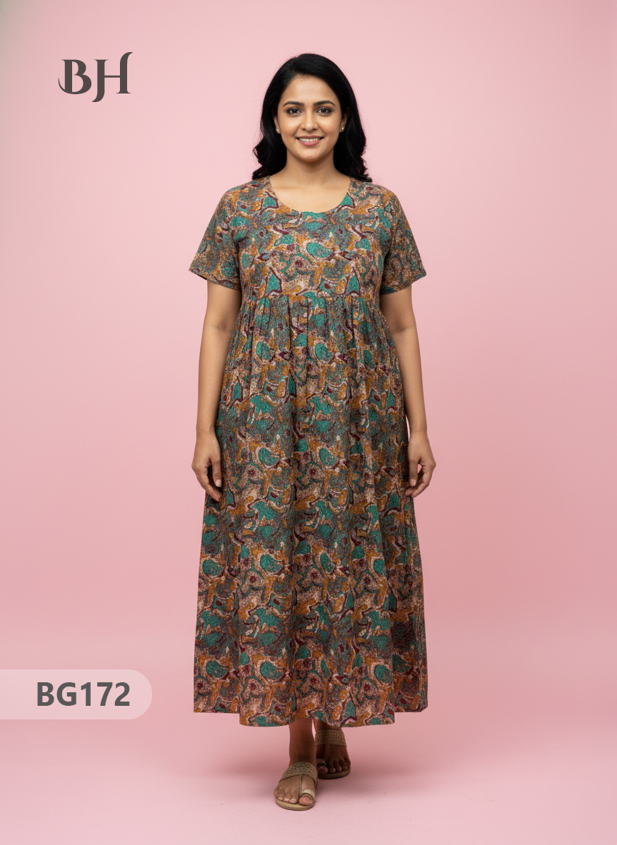 100% Cotton (Soft) Free Size → up to Bust 44" (2XL) Height (Dress Length): 53" Easy Care • Machine Washable