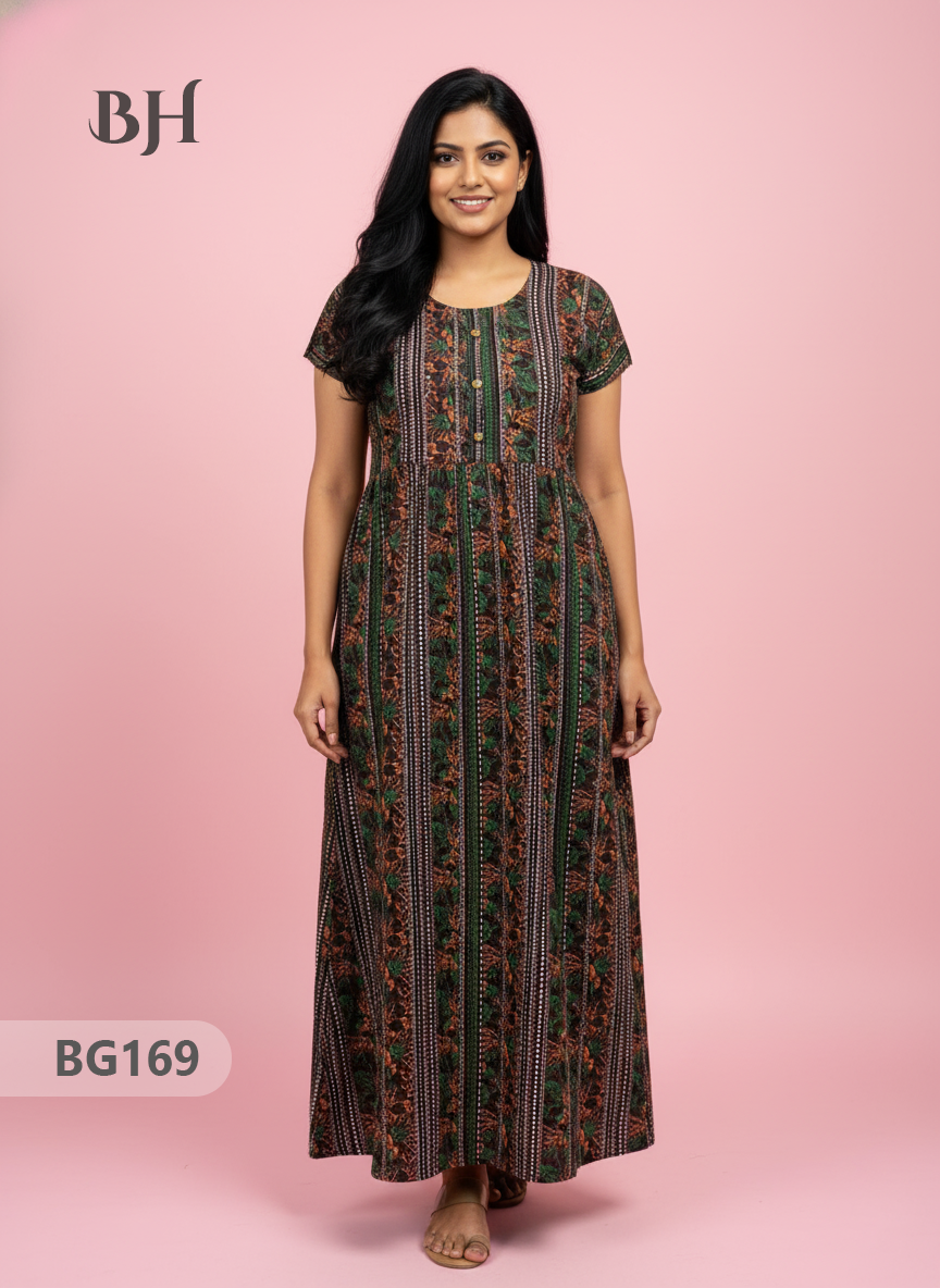 100% Cotton (Soft) Free Size → up to Bust 44" (2XL) Height (Dress Length): 53" Easy Care • Machine Washable