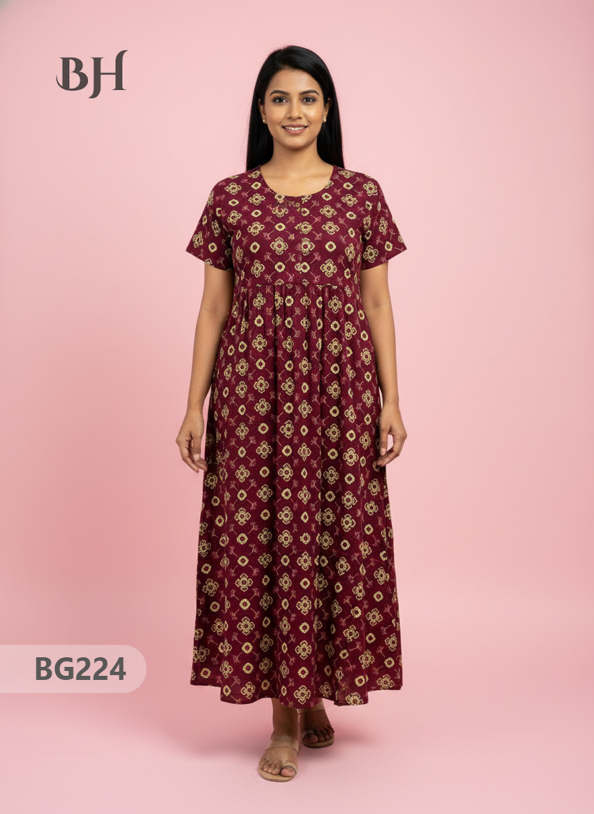 Wear as comfy nightwear or a relaxed at-home frock. Pair with lightweight slippers for cosy evenings or layer with a shrug for early-morning chores. The side pocket adds convenience for small essentials.