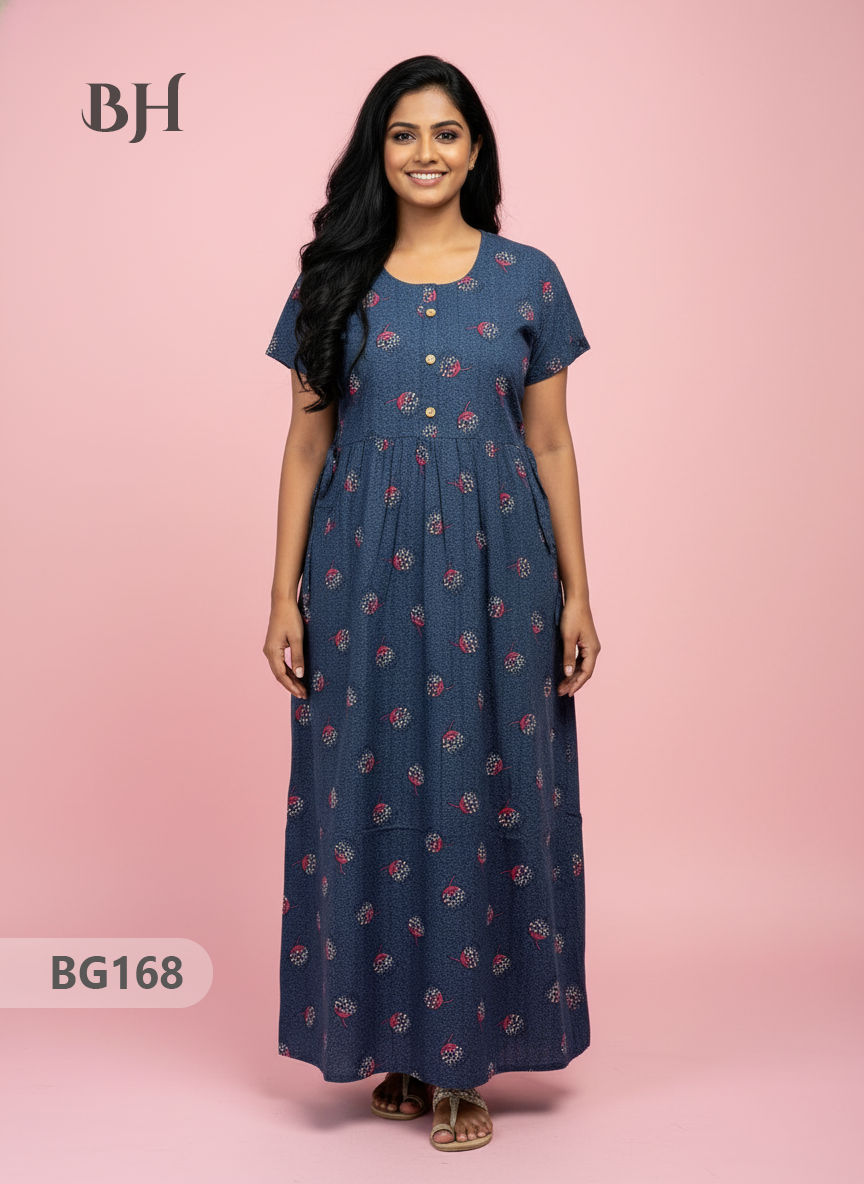 100% Cotton (Soft) Free Size → up to Bust 44" (2XL) Height (Dress Length): 53" Easy Care • Machine Washable
