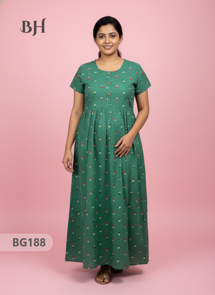 100% Cotton (Soft) Free Size → up to Bust 44" (2XL) Height (Dress Length): 53" Easy Care • Machine Washable