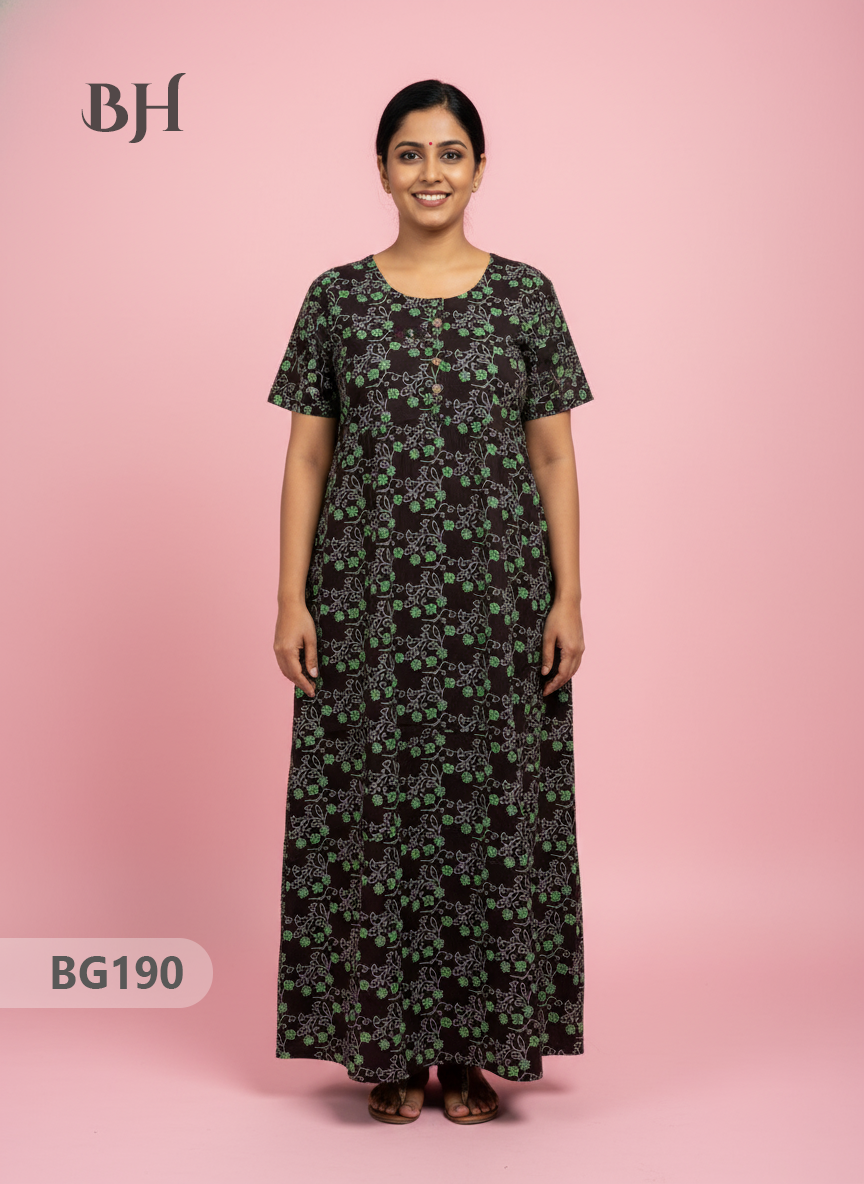 100% Cotton (Soft) Free Size → up to Bust 44" (2XL) Height (Dress Length): 53" Easy Care • Machine Washable