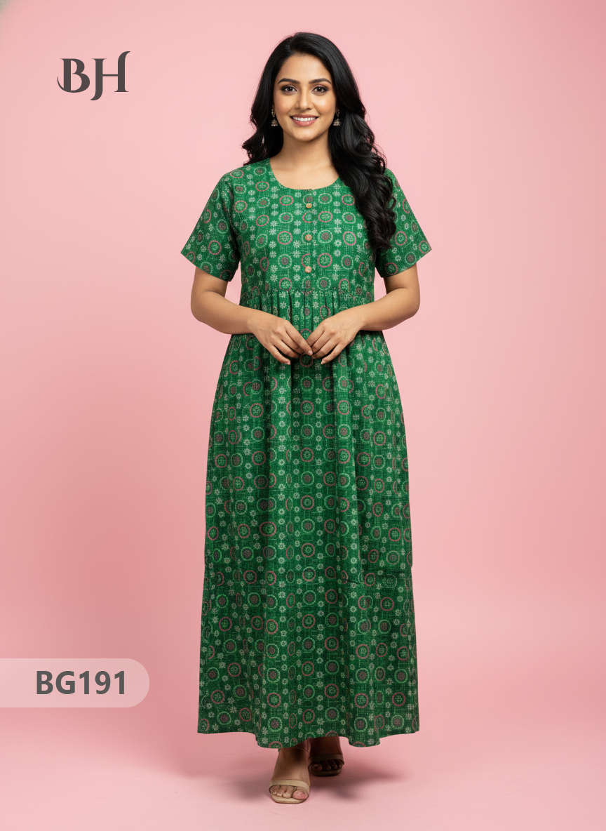 100% Cotton (Soft) Free Size → up to Bust 44" (2XL) Height (Dress Length): 53" Easy Care • Machine Washable