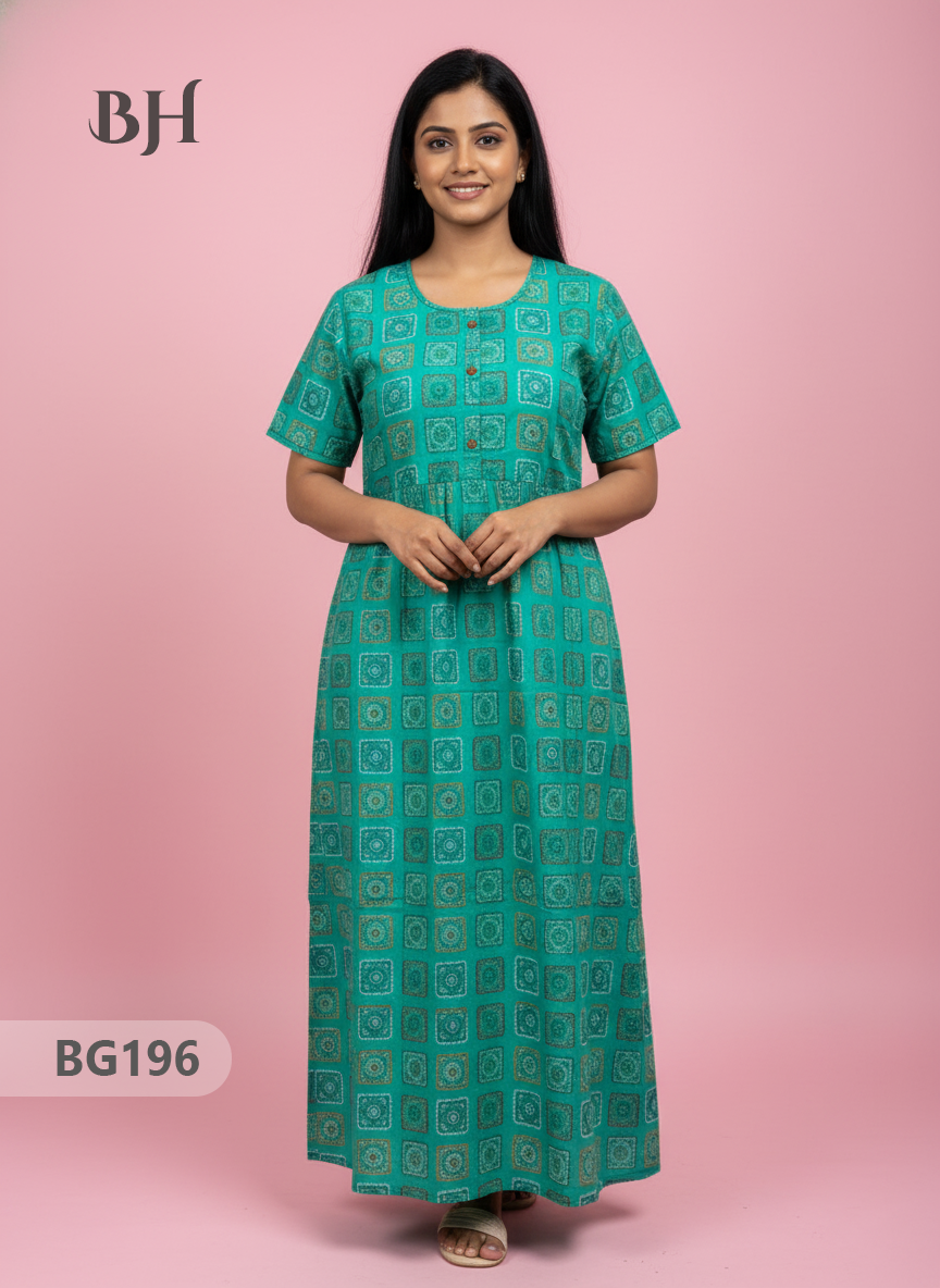 100% Cotton (Soft) Free Size → up to Bust 44" (2XL) Height (Dress Length): 53" Easy Care • Machine Washable