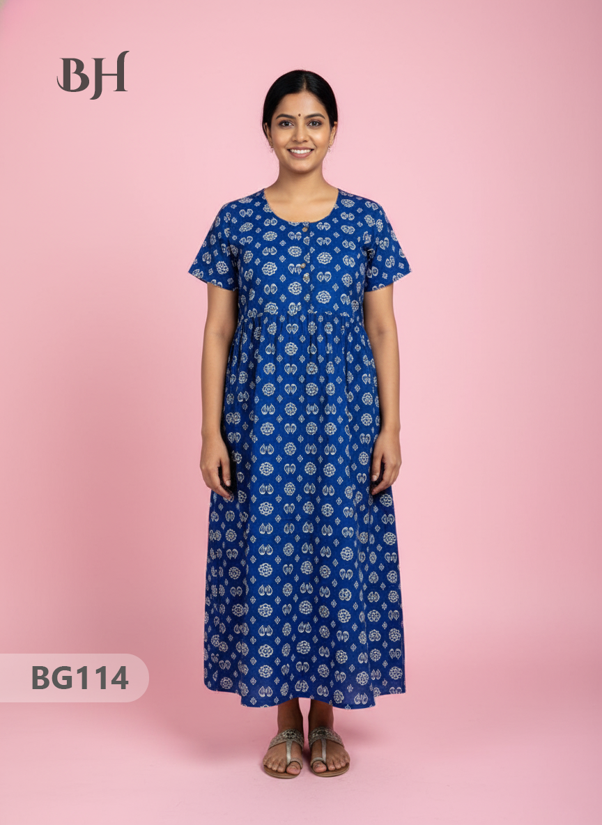 100% Cotton (Soft) Free Size → up to Bust 44" (2XL) Height (Dress Length): 53" Easy Care • Machine Washable