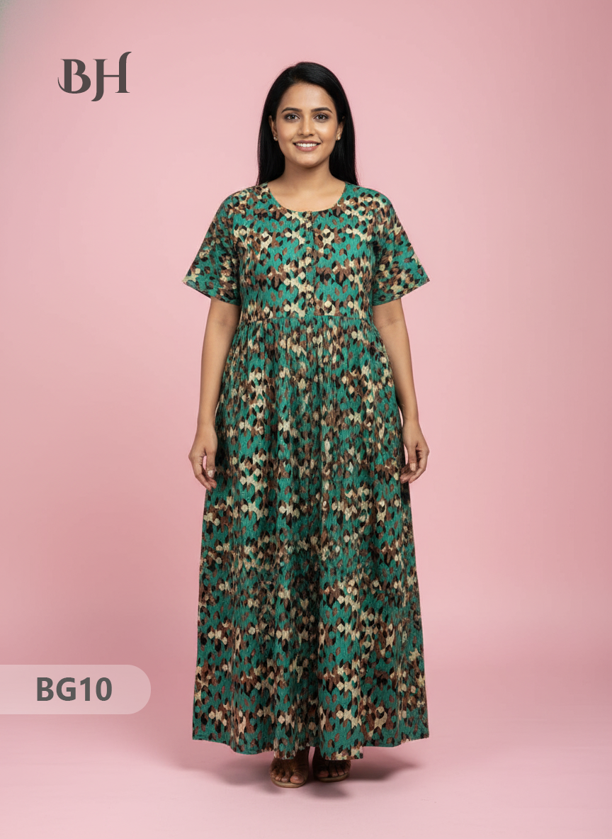 100% Cotton (Soft) Free Size → up to Bust 44" (2XL) Height (Dress Length): 53" Easy Care • Machine Washable