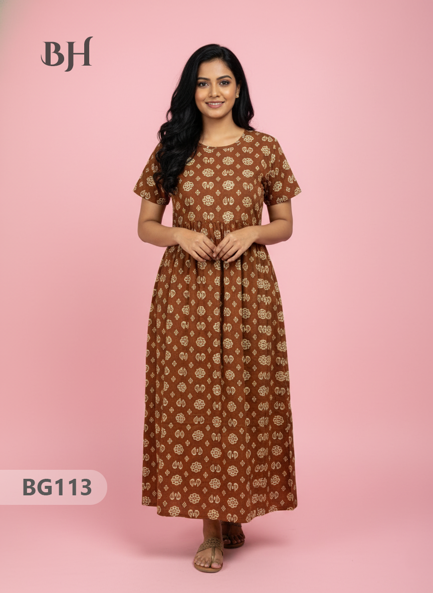 100% Cotton (Soft) Free Size → up to Bust 44" (2XL) Height (Dress Length): 53" Easy Care • Machine Washable