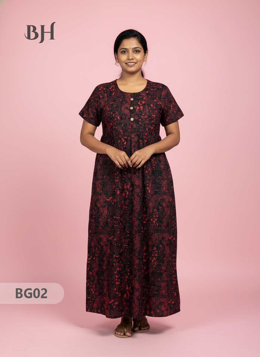 100% Cotton (Soft) Free Size → up to Bust 44" (2XL) Height (Dress Length): 53" Easy Care • Machine Washable