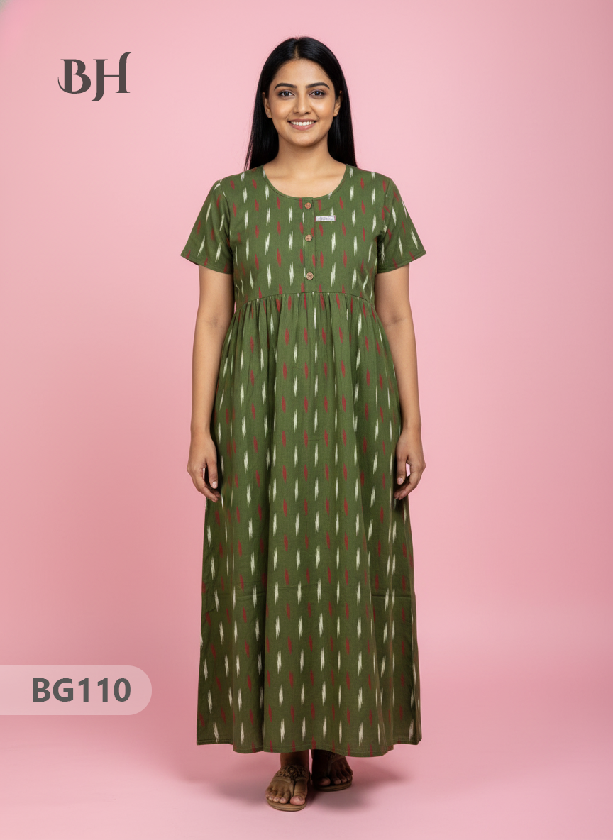 100% Cotton (Soft) Free Size → up to Bust 44" (2XL) Height (Dress Length): 53" Easy Care • Machine Washable