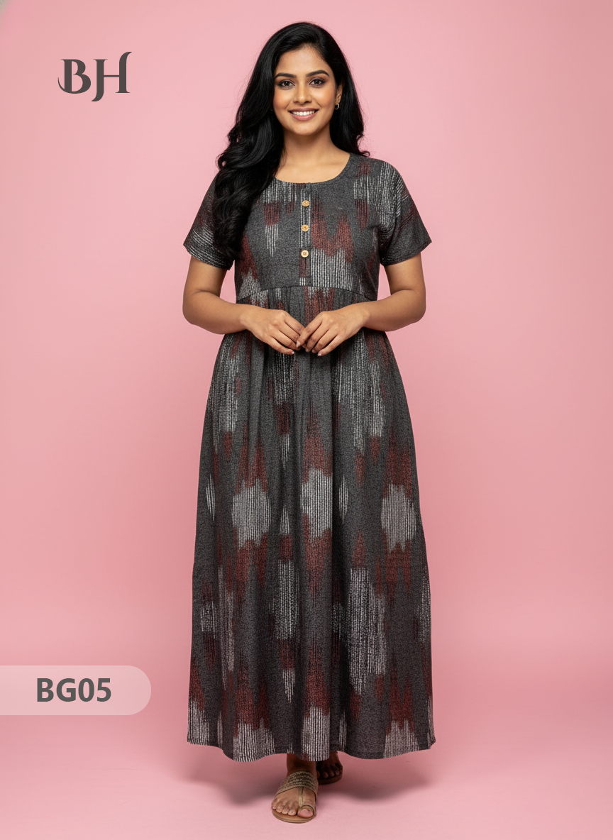 100% Cotton (Soft) Free Size → up to Bust 44" (2XL) Height (Dress Length): 53" Easy Care • Machine Washable