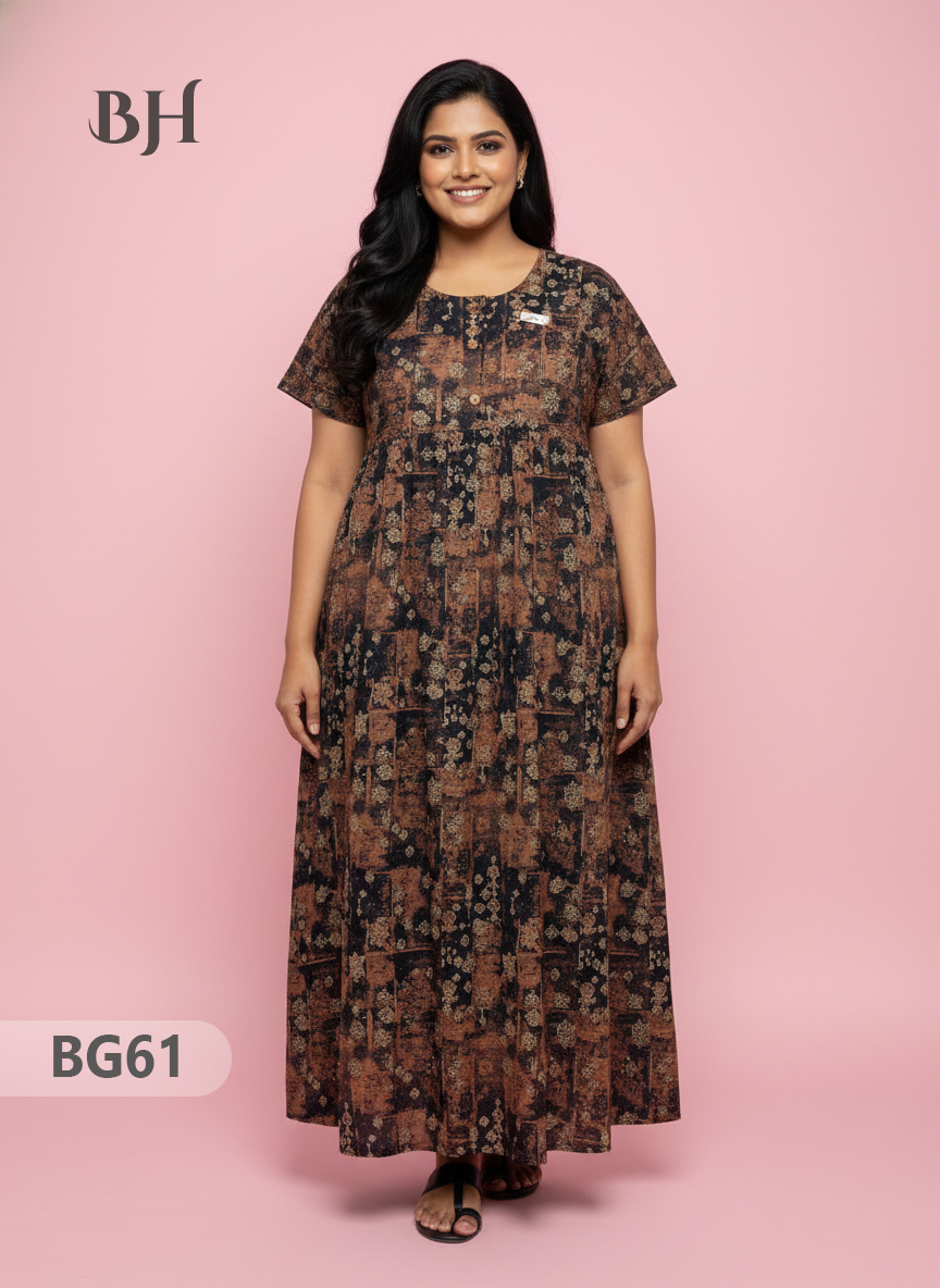 100% Cotton (Soft) Free Size → up to Bust 44" (2XL) Height (Dress Length): 53" Easy Care • Machine Washable