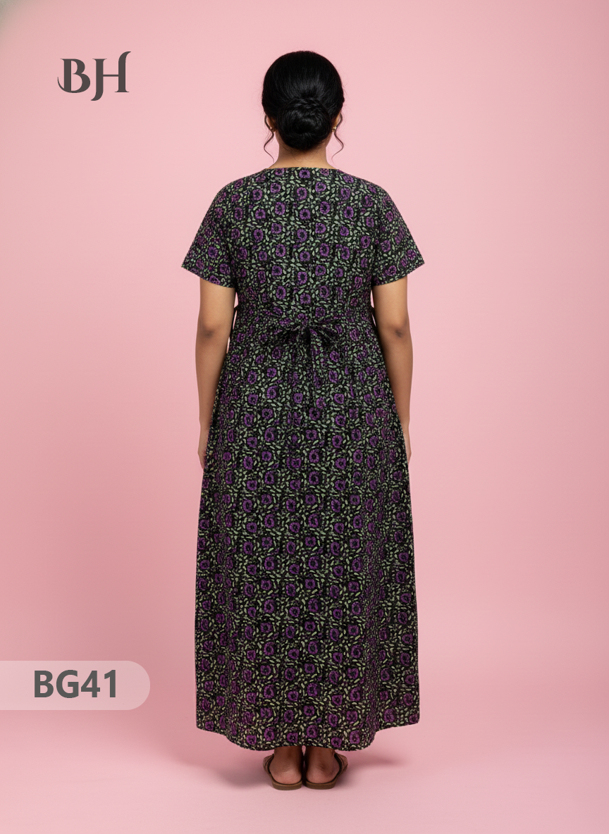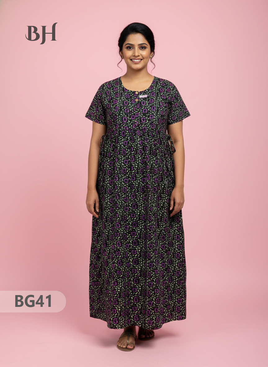 Wear as comfy nightwear or a relaxed at-home frock. Pair with lightweight slippers for cosy evenings or layer with a shrug for early-morning chores. The side pocket adds convenience for small essentials.