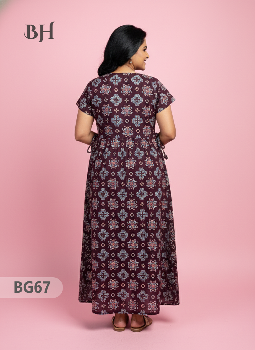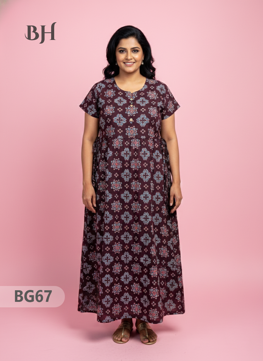 100% Cotton (Soft) Free Size → up to Bust 44" (2XL) Height (Dress Length): 53" Easy Care • Machine Washable