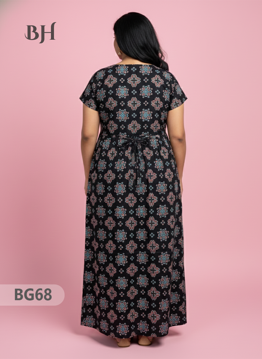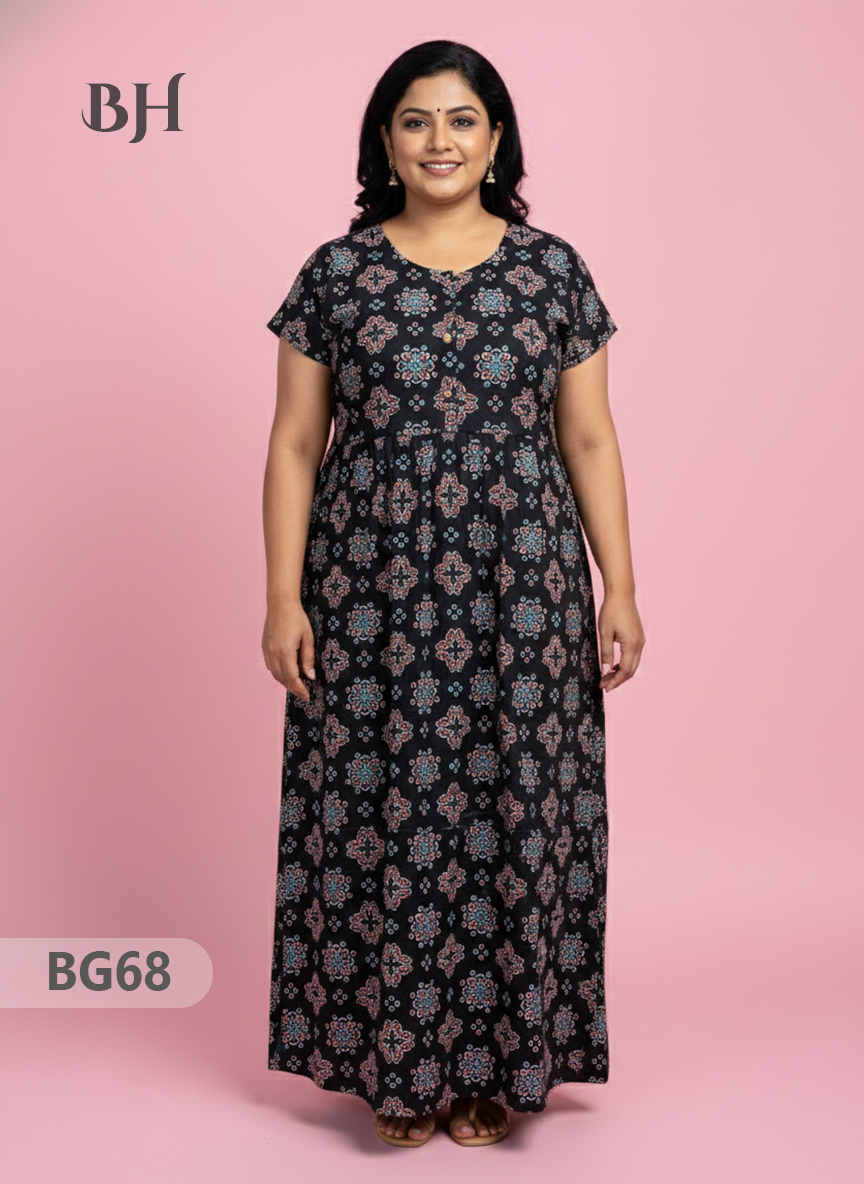 100% Cotton (Soft) Free Size → up to Bust 44" (2XL) Height (Dress Length): 53" Easy Care • Machine Washable