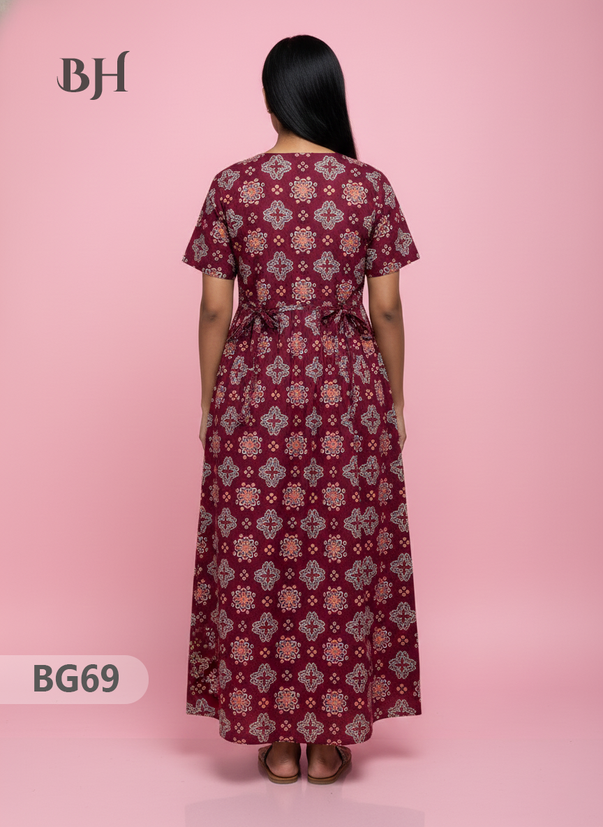 100% Cotton (Soft) Free Size → up to Bust 44" (2XL) Height (Dress Length): 53" Easy Care • Machine Washable