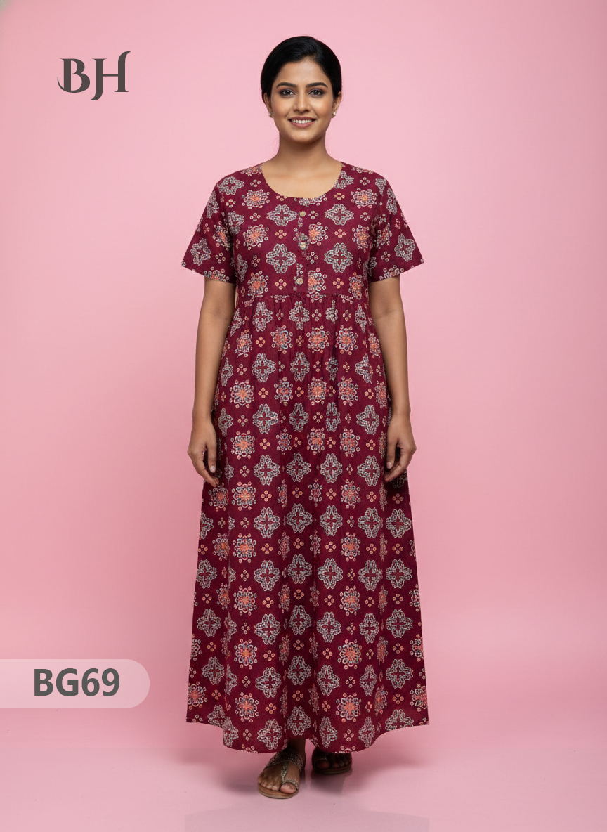 Wear as comfy nightwear or a relaxed at-home frock. Pair with lightweight slippers for cosy evenings or layer with a shrug for early-morning chores. The side pocket adds convenience for small essentials.