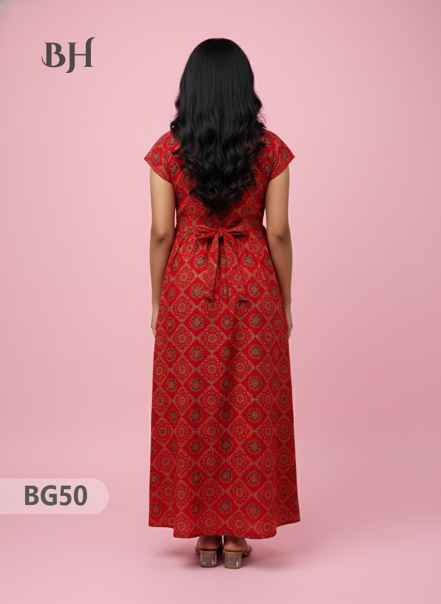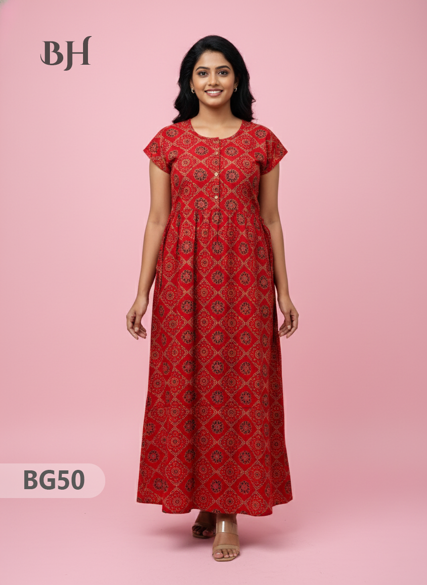 100% Cotton (Soft) Free Size → up to Bust 44" (2XL) Height (Dress Length): 53" Easy Care • Machine Washable